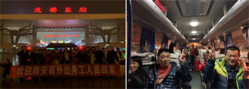 1月27日,簡單熱情地歡迎儀式結(jié)束后,蜀通公司大巴將35名粵務(wù)人員從成都東站送達雅安,順利完成“無縫銜接”接駁運輸任務(wù)。