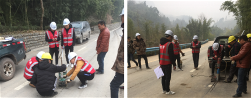 1月25日,寶興縣公路養(yǎng)護段組織第三方試驗檢測機構對路橋公司承建的“羅家村一、四、七組通組公路改(擴)建工程(K0+000~K0+800段)路面鋪筑及沿線邊溝、 交安工程”進行交工驗收外業(yè)檢測。寶興縣發(fā)改局、紀檢組以及參建監(jiān)理、設計、施工單位代表一同前往該項目現(xiàn)場進行交工驗收。