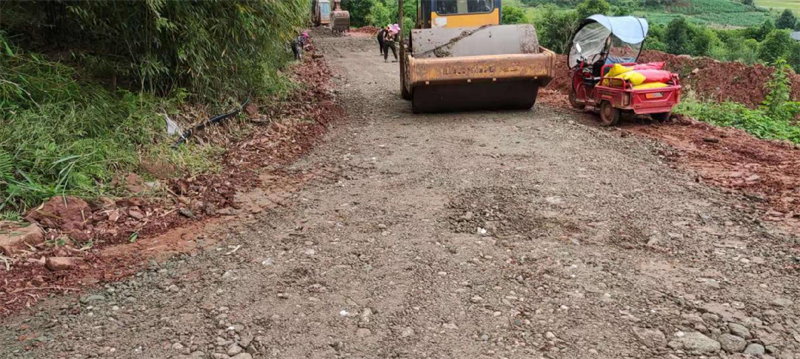 在路橋公司承接的“世界銀行貸款蘆山地震災(zāi)后恢復(fù)重建天全縣始陽至新華農(nóng)村公路”項目天全縣新華鄉(xiāng)柏樹村至永安村段,其村道路面結(jié)構(gòu)層差,路基窄,雨水多,晴通雨阻,對本地農(nóng)產(chǎn)品外運造成很大困擾,嚴重影響了民眾的生產(chǎn)生活。為積極響應(yīng)市委市政府加快雅安市“四好農(nóng)村路”的部署安排,解決當(dāng)?shù)卮迕癯鲂须y、本土農(nóng)產(chǎn)品外銷滯后等問題,路橋公司天全項目部主動作為,在推進項目部主體建設(shè)的同時,堅持以問題為導(dǎo)向,采用“始新路”施工現(xiàn)場自拌水穩(wěn)料,為村民鋪設(shè)了一段長臨時水穩(wěn)路面,方便廣大村民順利出行,促進當(dāng)?shù)剞r(nóng)產(chǎn)品物資交流。