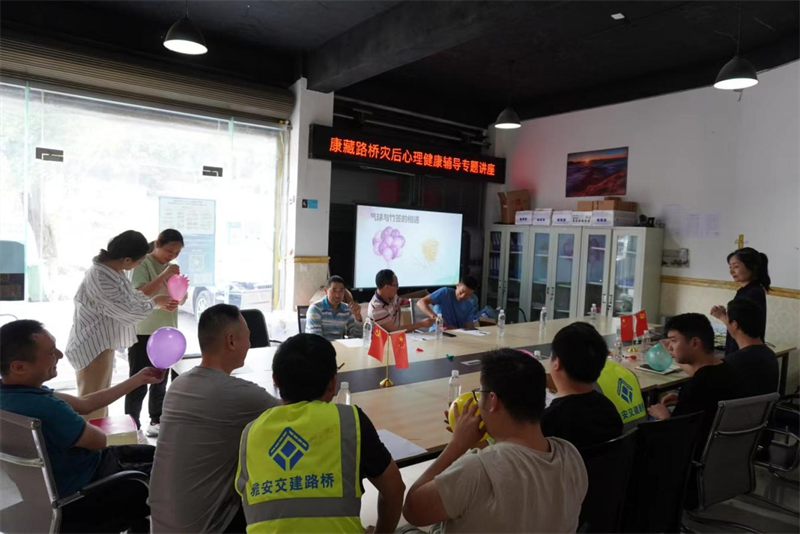 “6.1”蘆山地震發(fā)生后,路橋公司寶興項目部員工親身經(jīng)歷了全過程,第一時間組織人力、物力參加人員道路搶通保通和生產(chǎn)自救,突發(fā)地震災(zāi)害對職工造成不同程度的心理沖擊。活動中,左老師與員工們歡聚一堂,以小游戲與員工互動調(diào)整大家心理狀態(tài),圍繞員工心理健康常識、常見心理困擾及應(yīng)對策略和如何緩解工作壓力、控制個人情緒、提高心理健康水平等內(nèi)容,評估員工心理健康狀況,剖析員工情緒現(xiàn)狀及負面情緒產(chǎn)生的原因,幫助梳理解決方案。