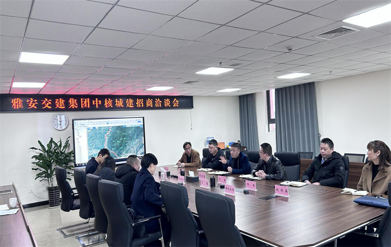 中核城建公司副總經(jīng)理兼市場(chǎng)開(kāi)發(fā)部經(jīng)理王強(qiáng)、總經(jīng)理助理?xiàng)罾,雅安交建集團(tuán)副總經(jīng)理丁春,以及雙方相關(guān)部門(mén)負(fù)責(zé)人參洽談。