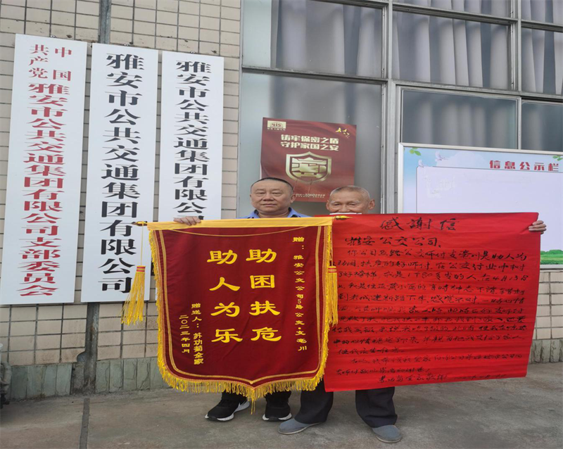 近日,雅安市公共交通集團(tuán)有限公司5路公交車駕駛員支亳川,在行駛過程中熱心幫助一老人成功尋找到家人,給文明雨城增添了暖心的一幕。4月17日,老人和家人帶著親手寫的感謝信和錦旗,來到公交集團(tuán)當(dāng)面感謝公交集團(tuán)和5路駕駛員支師傅熱心助人的善舉。