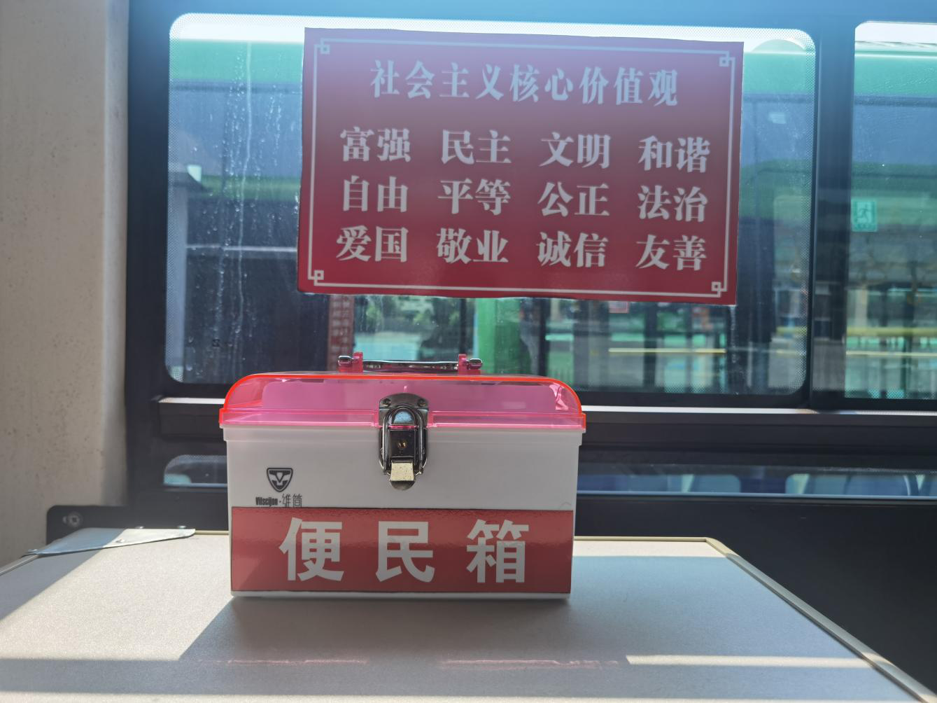 便民箱位于駕駛室正后方,箱內(nèi)包括口罩、繃帶、創(chuàng)可貼、棉簽、碘伏及速效救心丸等物品,如乘客乘車途中有需要的,可自行領(lǐng)取使用;愛心雨傘放置在車輛上車門處,每車3把,供雨天乘客借用歸還后循環(huán)使用。