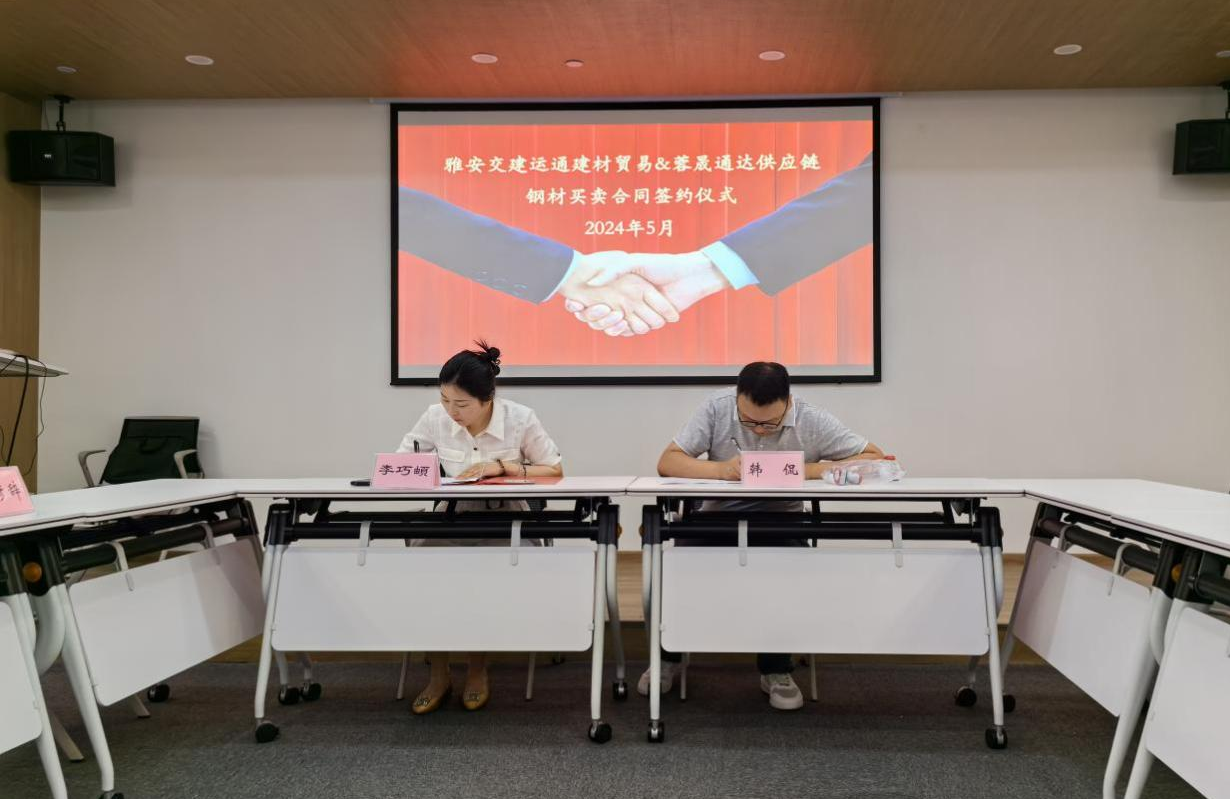 近日,雅安交建集團(tuán)運(yùn)通建材貿(mào)易有限公司(以下簡稱:建材公司)與四川蓉晟通達(dá)供應(yīng)鏈管理有限公司(以下簡稱:蓉晟通達(dá)公司)在成都舉行鋼材買賣合同簽約儀式,標(biāo)志著建材公司順利完成2024年度首個(gè)市外貿(mào)易業(yè)務(wù)的簽訂工作,且合同金額超2300萬元。