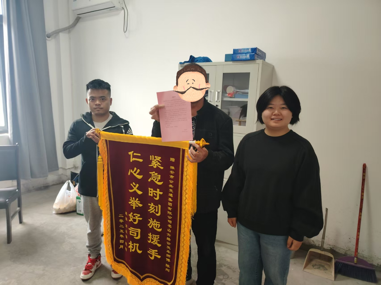 4月10日,市民高先生專(zhuān)程來(lái)到雅安公交集團(tuán),將一面寫(xiě)有“緊急時(shí)刻伸援手,仁心義舉好司機(jī)”的錦旗送到公交公司工作人員手中,向危急關(guān)頭及時(shí)伸出援手的6路公交車(chē)駕駛員陳剛師傅表示感謝。