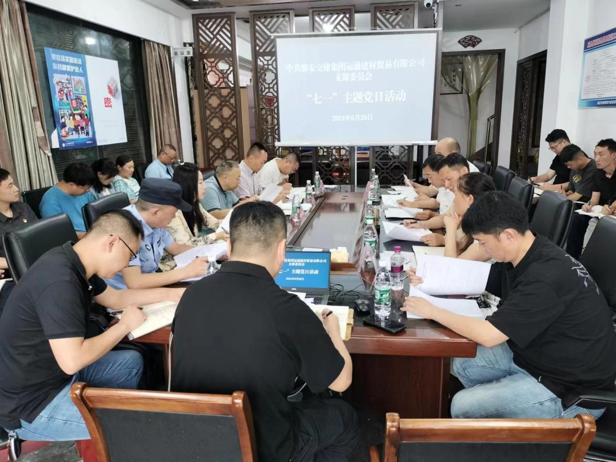 今年是中國共產黨成立103周年,為強化黨員干部政治紀律、組織紀律、廉潔紀律、群眾紀律、工作紀律、生活紀律觀念,夯實黨員干部職工廉潔從業(yè)的思想基礎,確保公司隊伍思想純潔、作風純潔、隊伍純潔和清正廉潔。按照黨紀學習教育學習計劃,結合公司黨支部實際,6月28日上午,建材公司黨支部組織建材、丹石、云石、興寶公司班子、黨員、預備黨員、發(fā)展對象及中層干部、重點崗位人員開展“七一”主題黨日活動。