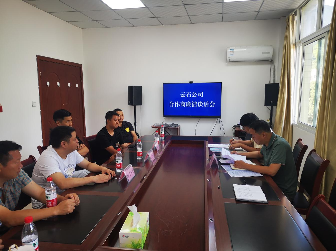 為營(yíng)造風(fēng)清氣正、崇尚廉潔的合作氛圍,7月1日上午,云石公司總經(jīng)理趙強(qiáng)主持召開(kāi)合作商廉潔座談會(huì)。公司班子成員、業(yè)務(wù)部門負(fù)責(zé)人、紀(jì)檢聯(lián)絡(luò)員以及新采購(gòu)的3家合作商代表參加座談。