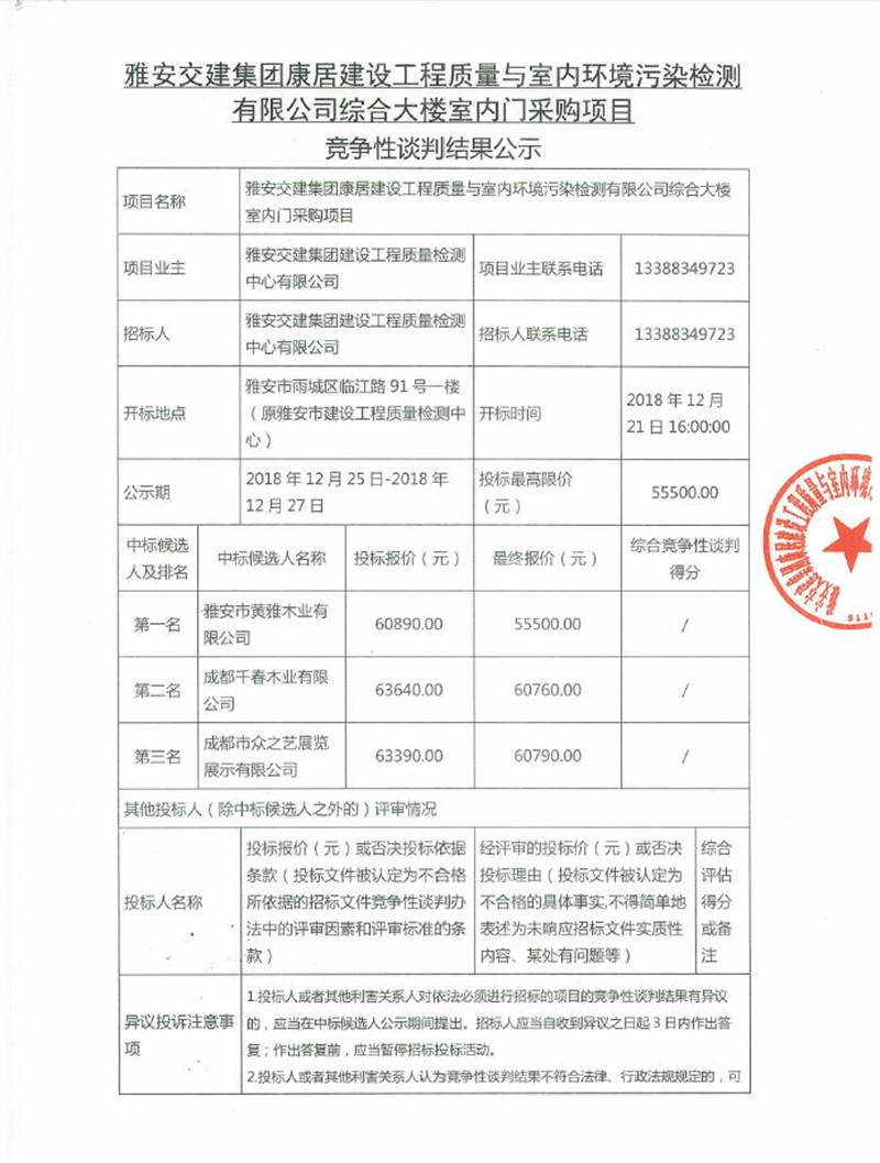 綜合大樓室內(nèi)門采購(gòu)項(xiàng)目競(jìng)爭(zhēng)性談判結(jié)果公示