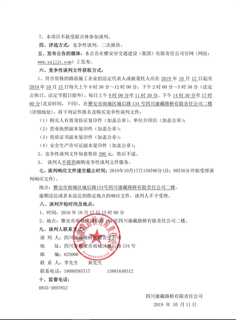 雅安市西入口整治與形象提升改造項目路面工程施工勞務(wù) 競爭性談判公告