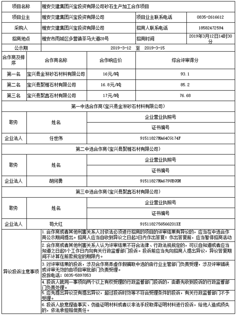 雅安交建集團興寶投資有限公司砂石生產(chǎn)加工合作項目公示