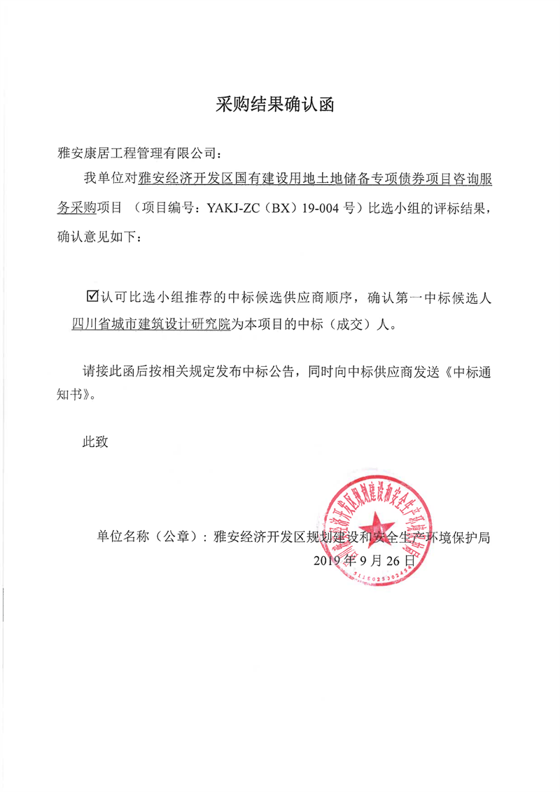 雅安經(jīng)濟開發(fā)區(qū)國有建設用地土地儲備專項債券項目咨詢服務采購比選結果公示