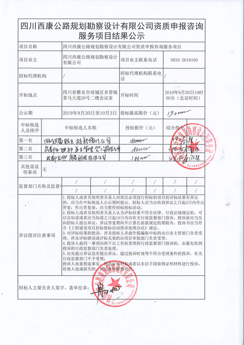 四川西康公路規(guī)劃勘察設計有限公司資質(zhì)申報咨詢服務項目結果公示