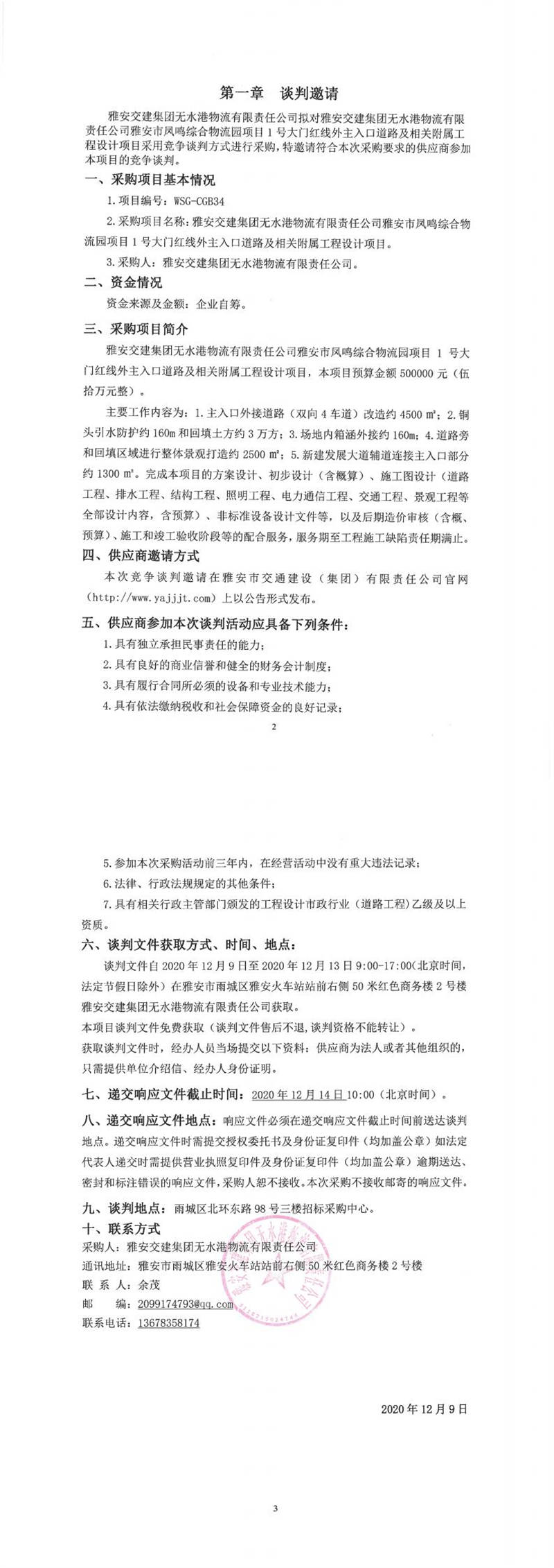 雅安交建集團(tuán)無水港物流有限責(zé)任公司雅安市鳳鳴綜合物流園項(xiàng)目1號大門紅線外主入口道路及相關(guān)附屬工程設(shè)計(jì)項(xiàng)目競爭談判公告