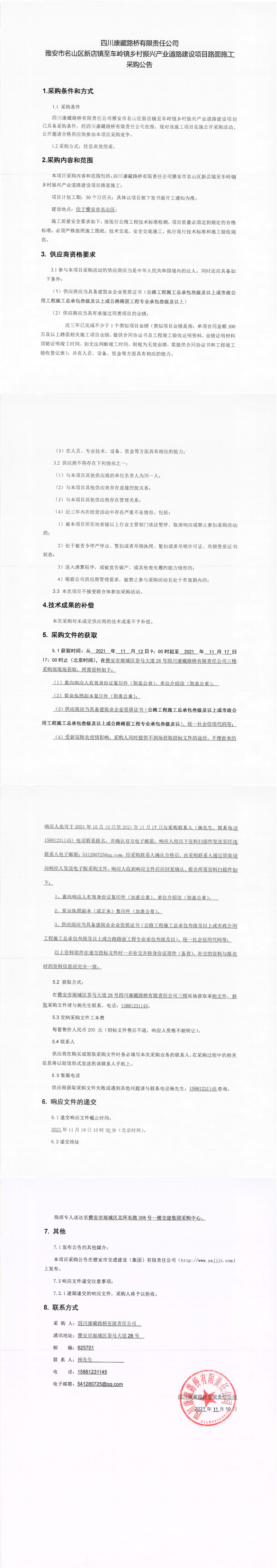 四川康藏路橋有限責(zé)任公司雅安市名山區(qū)新店鎮(zhèn)至車嶺鎮(zhèn)鄉(xiāng)村振興產(chǎn)業(yè)道路建設(shè)項目路面施工采購公告