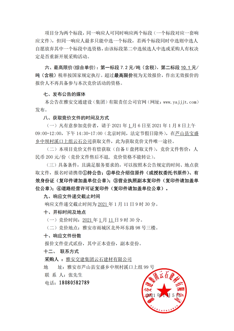 雅安交建集團(tuán)云石建材有限公司太平河清障項(xiàng)目運(yùn)輸服務(wù)競(jìng)價(jià)邀請(qǐng)公告