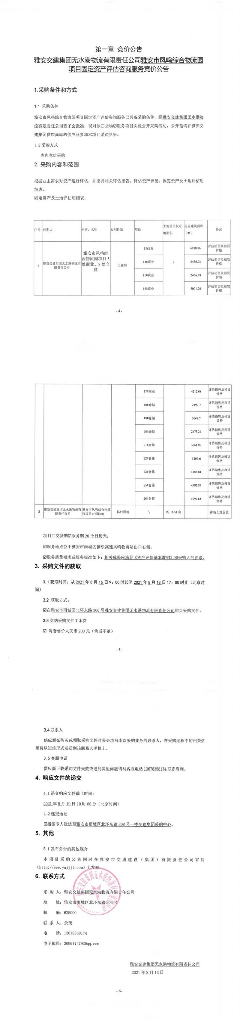 雅安交建集團(tuán)無(wú)水港物流有限責(zé)任公司雅安市鳳鳴綜合物流園項(xiàng)目固定資產(chǎn)評(píng)估咨詢服務(wù)競(jìng)價(jià)公告