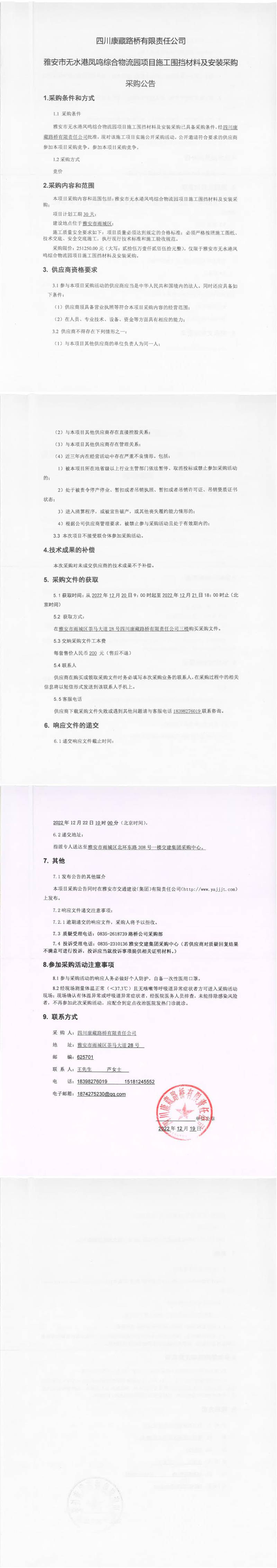 四川康藏路橋有限責(zé)任公司雅安市無水港鳳鳴綜合物流園項(xiàng)目施工圍擋材料及安裝采購(gòu)采購(gòu)公告