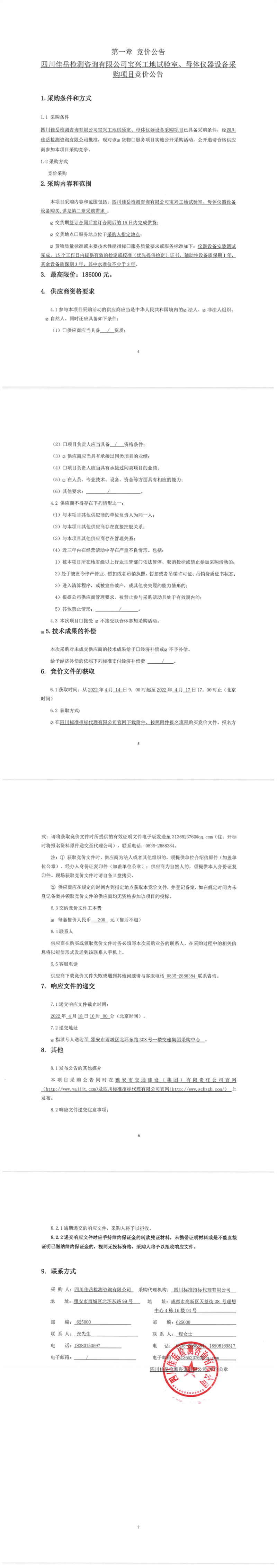 四川佳岳檢測(cè)咨詢(xún)有限公司寶興工地試驗(yàn)室、母體儀器設(shè)備采購(gòu)項(xiàng)目競(jìng)價(jià)公告