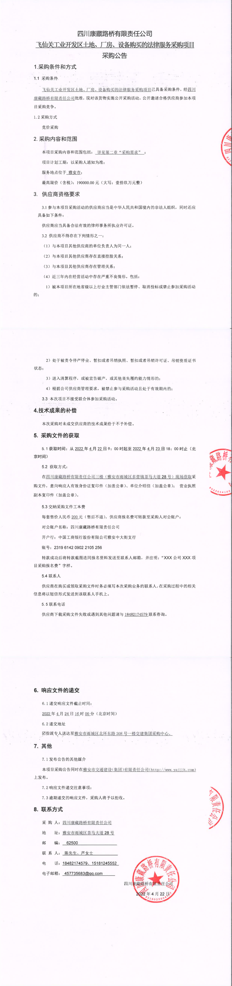 四川康藏路橋有限責(zé)任公司飛仙關(guān)工業(yè)開發(fā)區(qū)土地、廠房、設(shè)備購買的法律服務(wù)采購項目采購公告