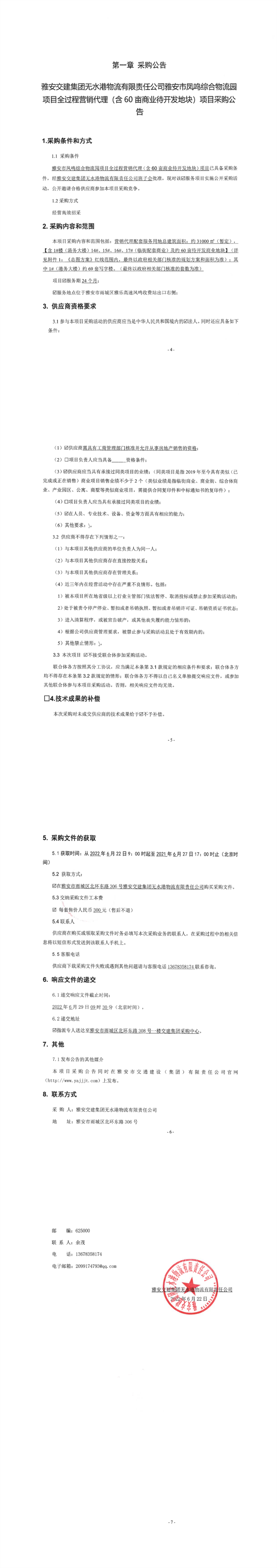 雅安交建集團(tuán)無(wú)水港物流有限責(zé)任公司雅安市鳳鳴綜合物流園項(xiàng)目全過程營(yíng)銷代理(含60畝商業(yè)待開發(fā)地塊)項(xiàng)目采購(gòu)公告