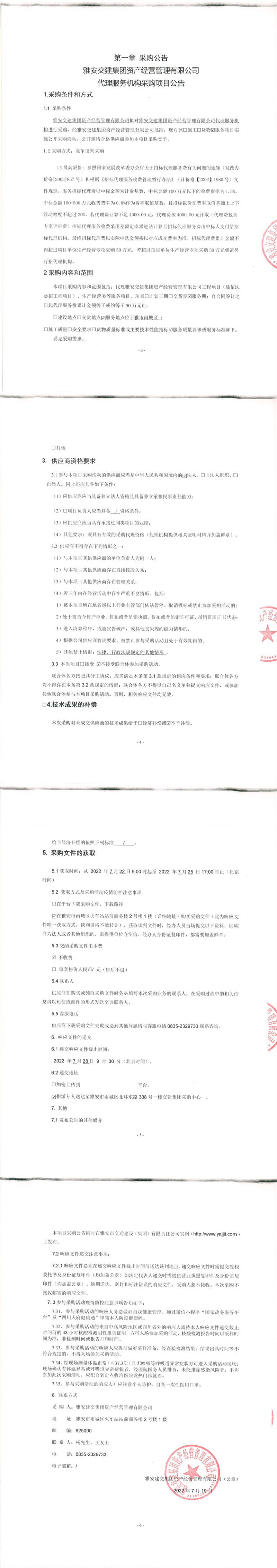 雅安交建集團資產經營管理有限公司代理服務機構采購項目公告