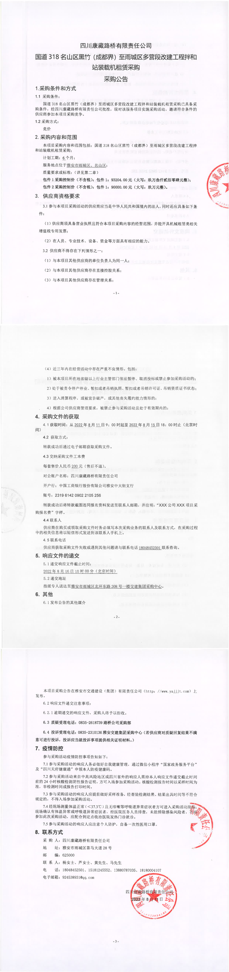 四川康藏路橋有限責(zé)任公司G318名山段項(xiàng)目拌合站水電材料采購(gòu)采購(gòu)公告