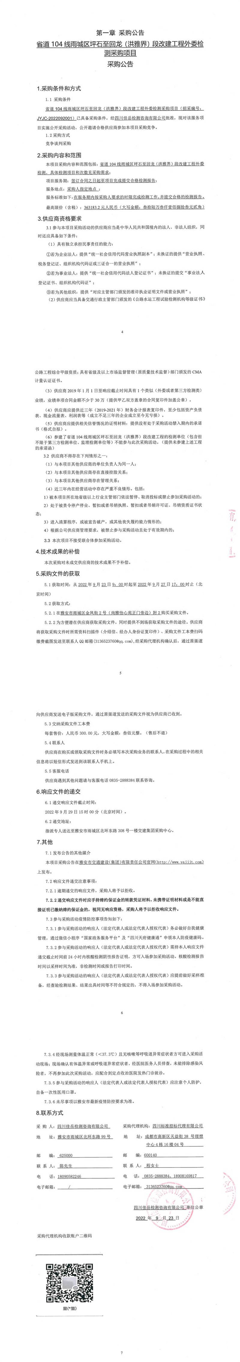 四川佳岳檢測(cè)咨詢有限公司省道104線雨城區(qū)坪石至回龍(洪雅界)段改建工程外委檢測(cè)采購(gòu)項(xiàng)目采購(gòu)公告