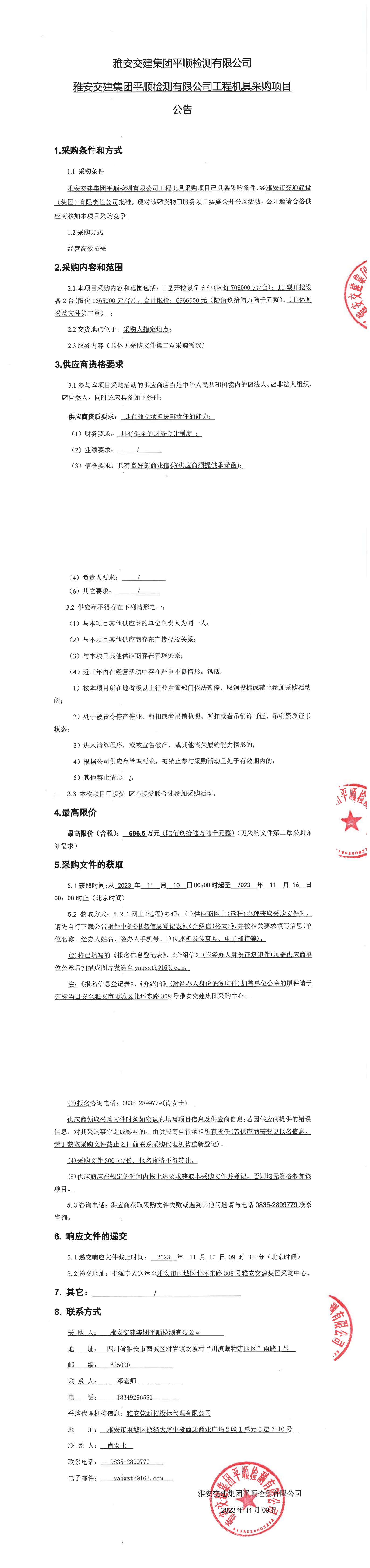 雅安交建集團(tuán)平順檢測(cè)有限公司工程機(jī)具采購(gòu)項(xiàng)目公告