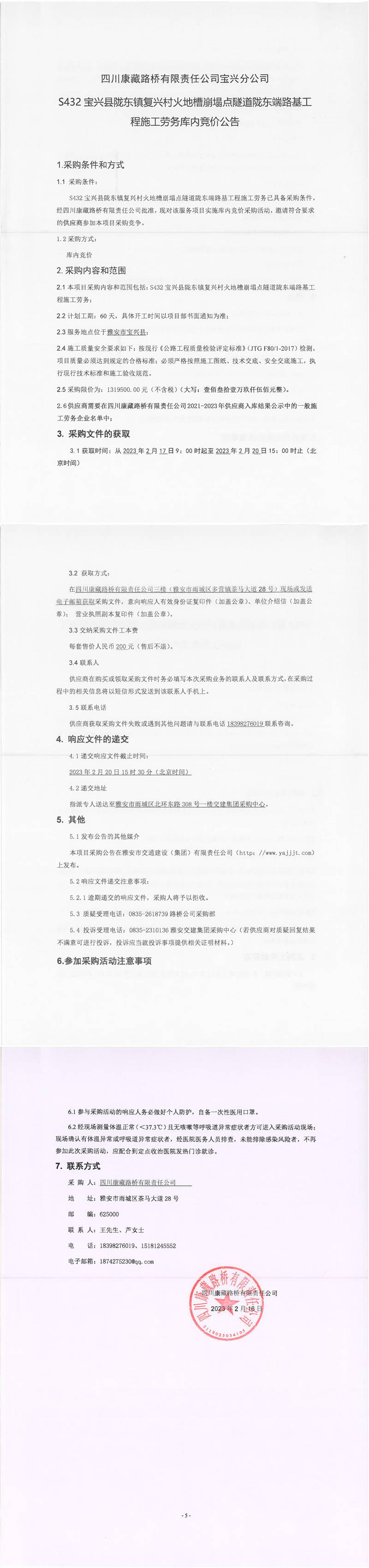 四川康藏路橋有限責(zé)任公司S432寶興縣隴東鎮(zhèn)復(fù)興村火地槽崩塌點(diǎn)隧道隴東端路基工程施工勞務(wù)庫內(nèi)競價公告