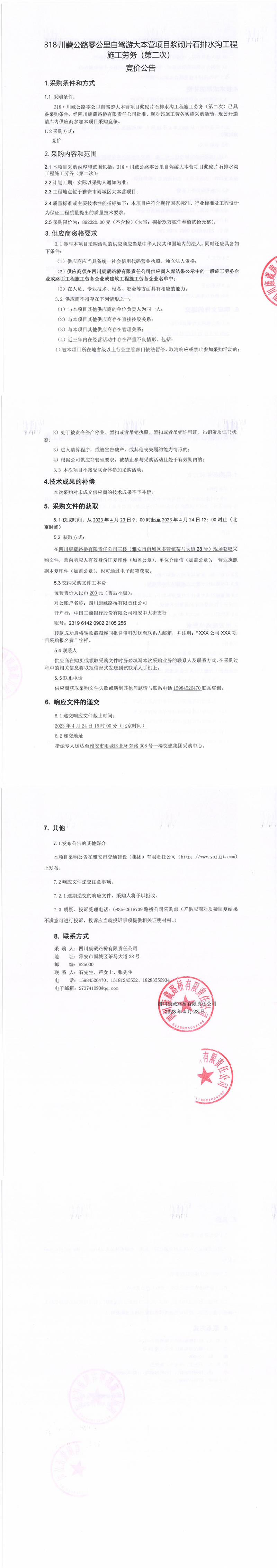 四川康藏路橋有限責(zé)任公司318·川藏公路零公里自駕游大本營(yíng)項(xiàng)目漿砌片石排水溝工程施工勞務(wù)(第二次)采購公告