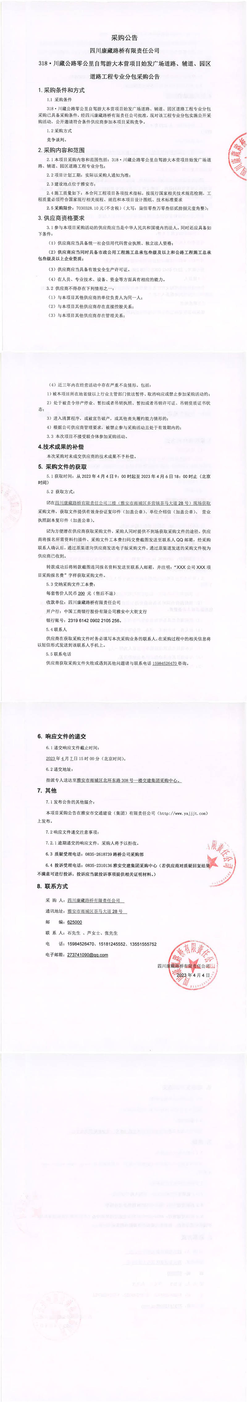 四川康藏路橋有限責(zé)任公司318·川藏公路零公里自駕游大本營項(xiàng)目始發(fā)廣場(chǎng)道路、輔道、園區(qū)道路工程專業(yè)分包采購公告