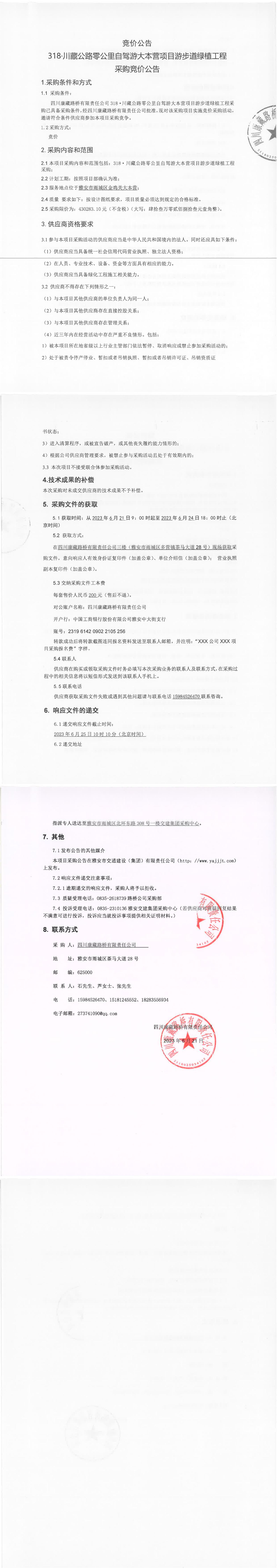 四川康藏路橋有限責(zé)任公司318·川藏公路零公里自駕游大本營(yíng)項(xiàng)目游步道綠植工程采購(gòu)競(jìng)價(jià)公告