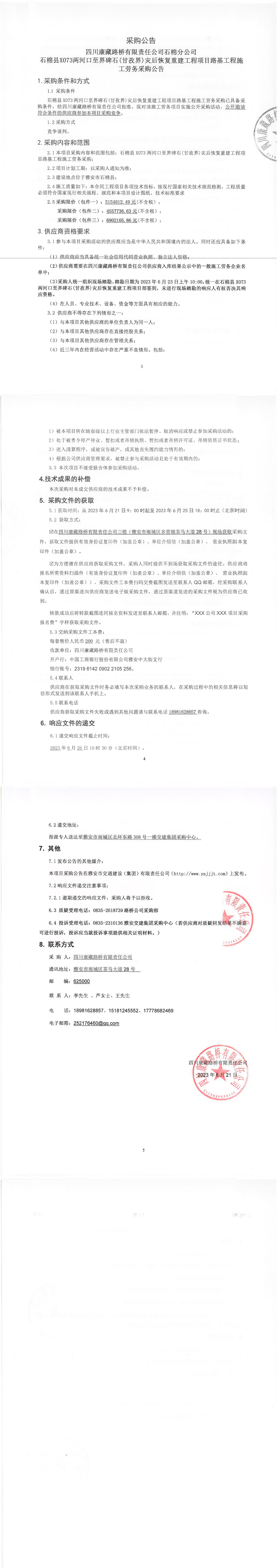 四川康藏路橋有限責(zé)任公司石棉縣X066王崗坪至王崗坪景區(qū)段災(zāi)后恢復(fù)重建工程項(xiàng)目路面工程K0+000-K48+691七標(biāo)段施工勞務(wù)采購(gòu)公告