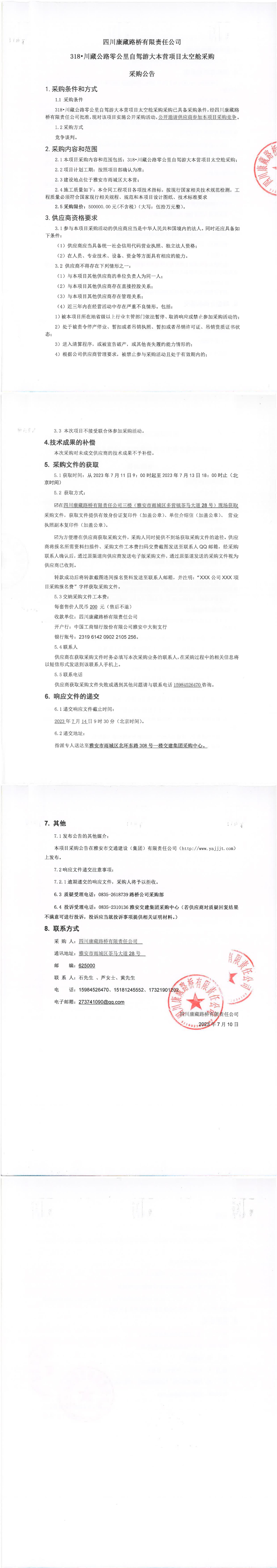 四川康藏路橋有限責(zé)任公司318·川藏公路零公里自駕游大本營(yíng)項(xiàng)目太空艙采購(gòu)公告