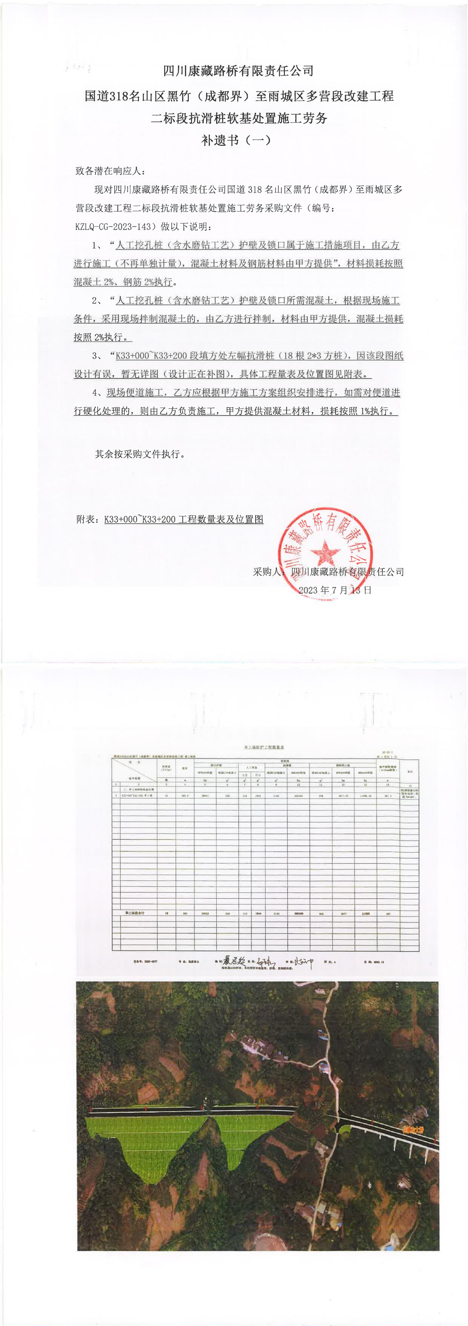 四川康藏路橋有限責(zé)任公司國道318名山區(qū)黑竹(成都界)至雨城區(qū)多營段改建工程二標(biāo)段抗滑樁軟基處置施工勞務(wù)補遺書(一))