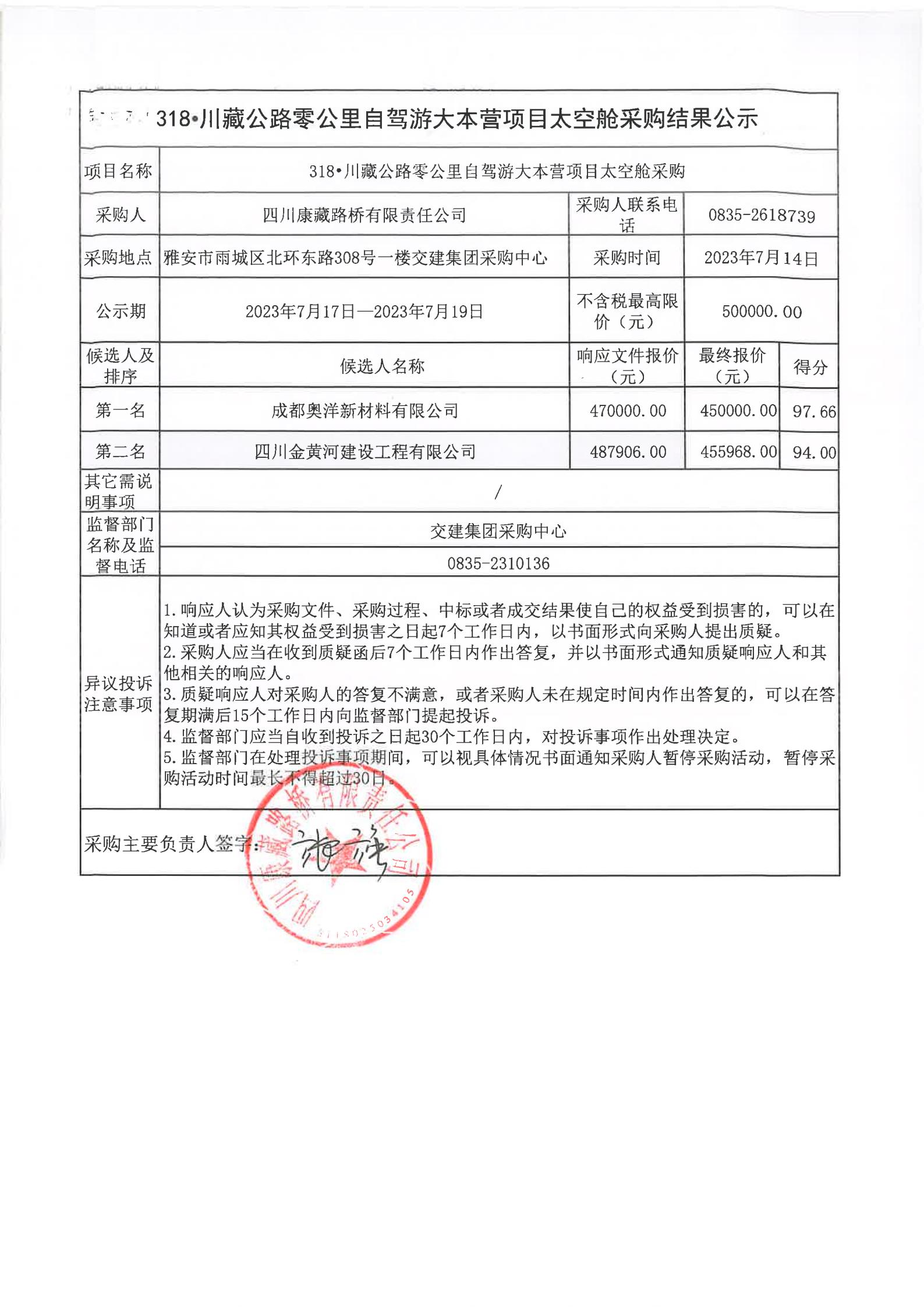 四川康藏路橋有限責任公司318·川藏公路零公里自駕游大本營項目太空艙采購結(jié)果公示
