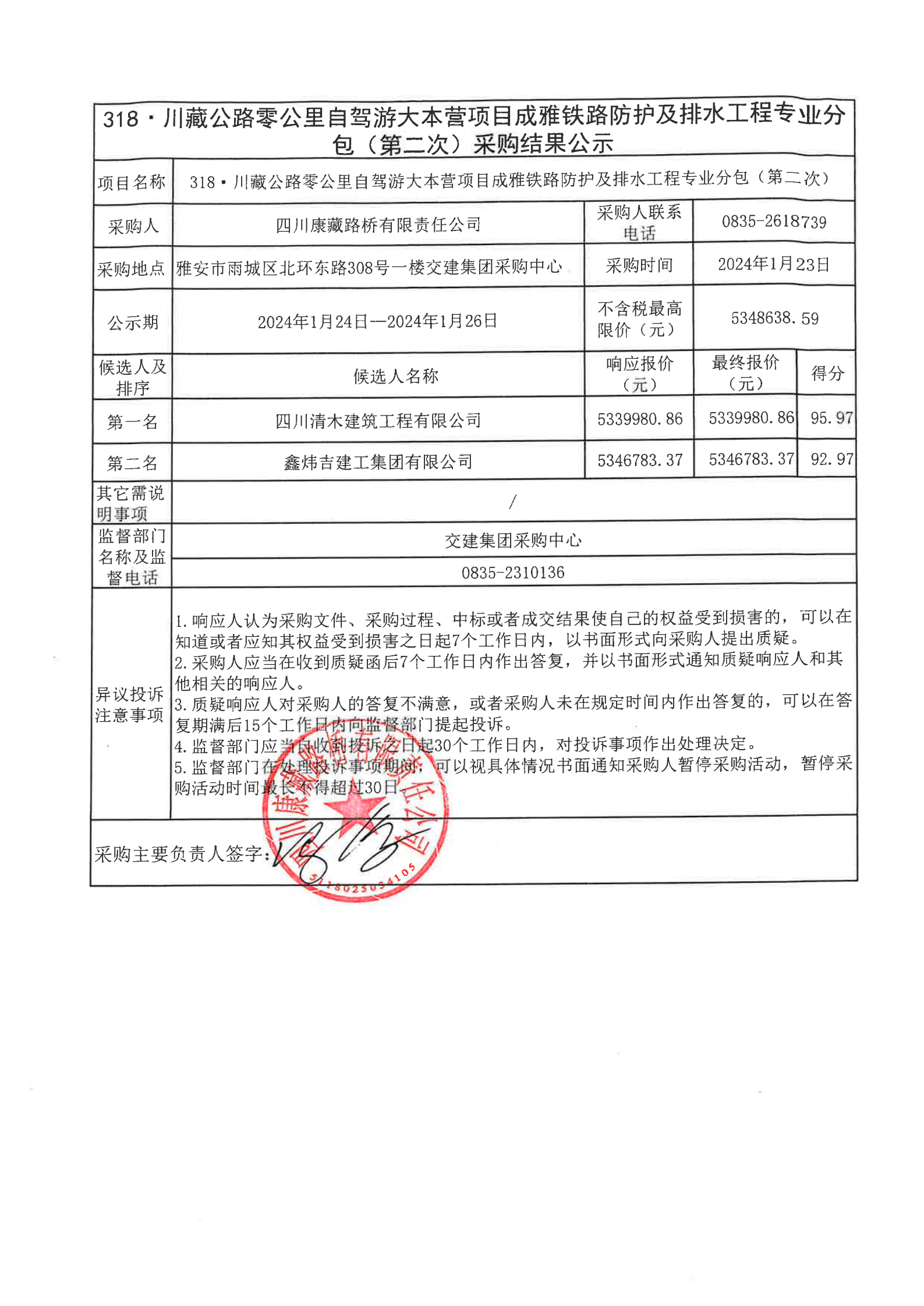 四川康藏路橋有限責(zé)任公司318·川藏公路零公里自駕游大本營(yíng)項(xiàng)目成雅鐵路防護(hù)及排水工程專業(yè)分包(第二次)采購(gòu)結(jié)果公示