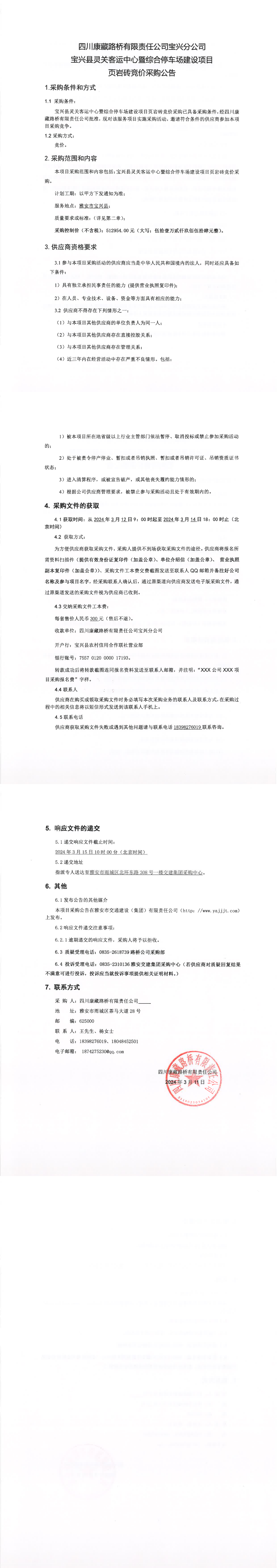 四川康藏路橋有限責(zé)任公司寶興縣靈關(guān)客運(yùn)中心暨綜合停車場建設(shè)項(xiàng)目頁巖磚競價采購公告