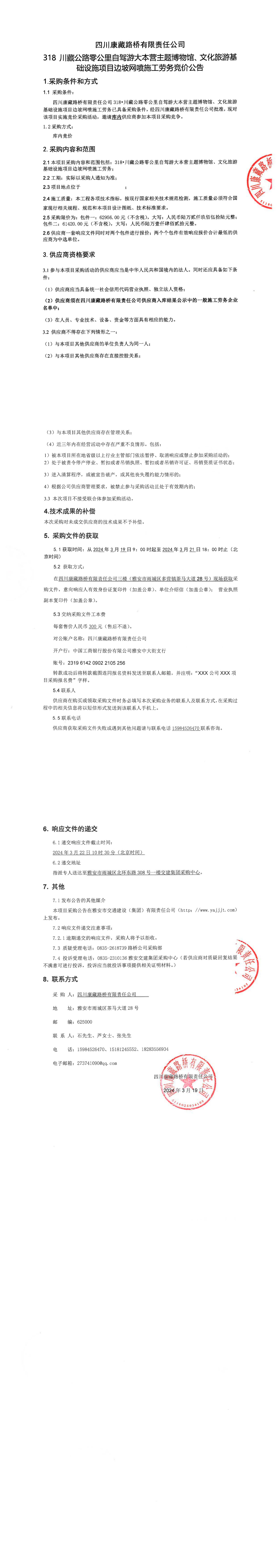 四川康藏路橋有限責(zé)任公司318•川藏公路零公里自駕游大本營主題博物館、文化旅游基礎(chǔ)設(shè)施項目邊坡網(wǎng)噴施工勞務(wù)采購公告