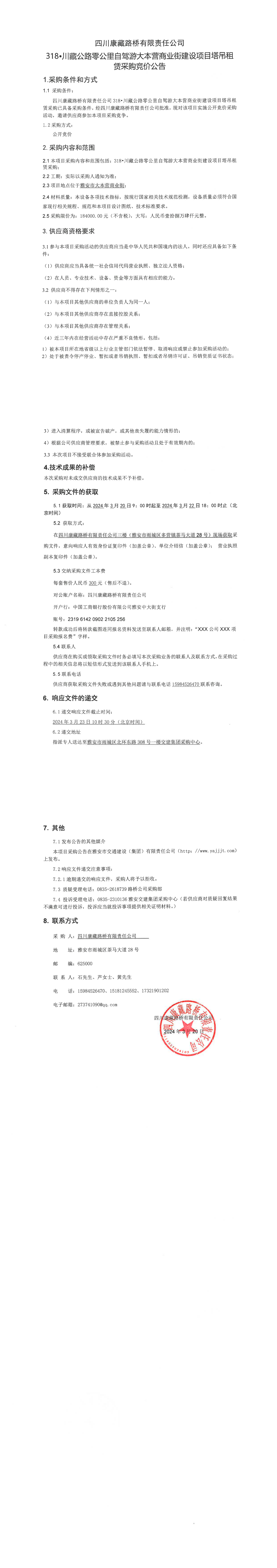 四川康藏路橋有限責(zé)任公司318·川藏公路零公里自駕游大本營商業(yè)街建設(shè)項(xiàng)目塔吊租賃采購競價(jià)公告