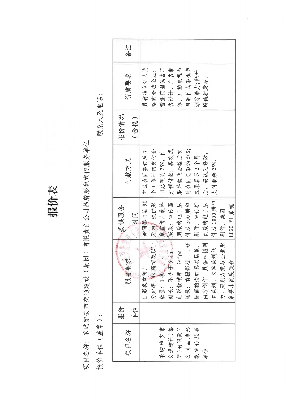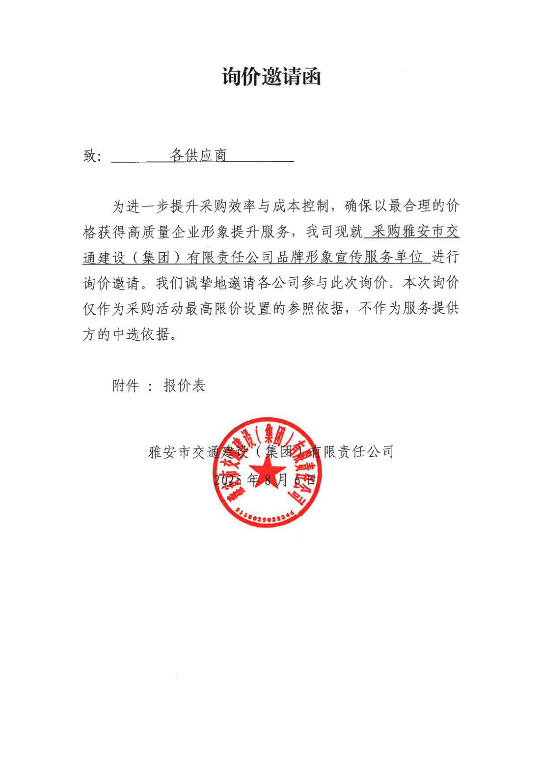 關(guān)于采購集團品牌形象宣傳服務(wù)單位的詢價函