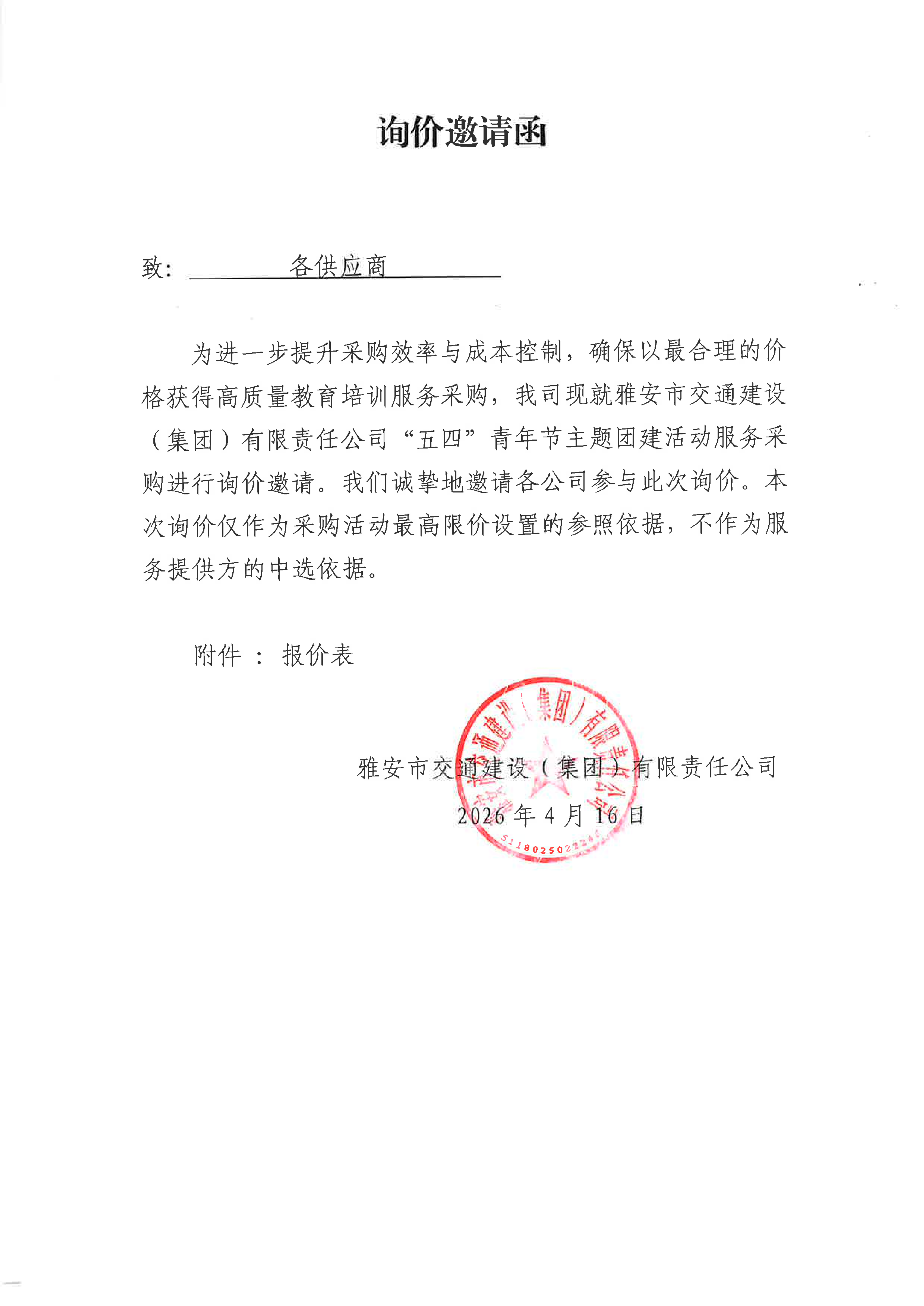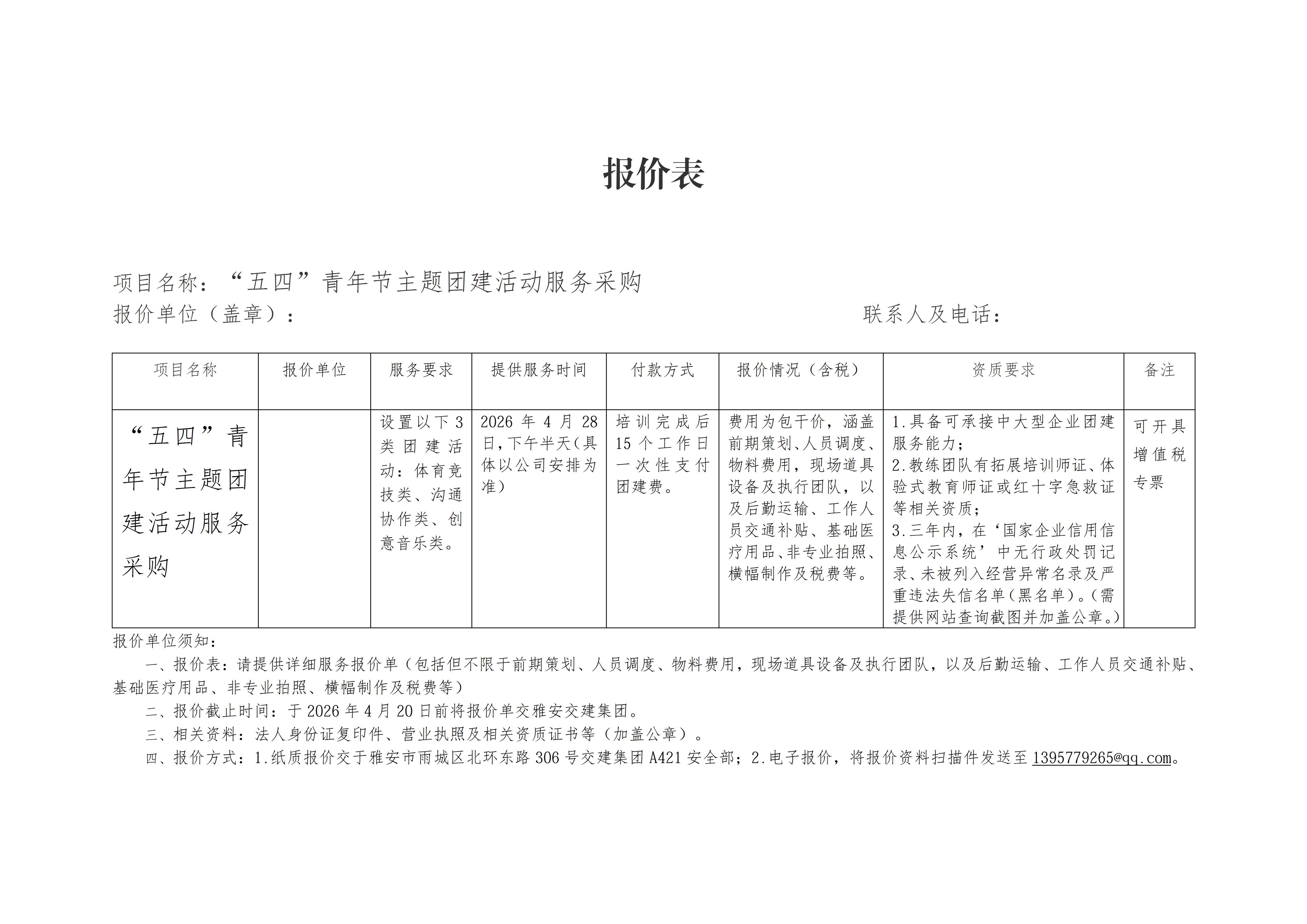 關于“五四”青年節(jié)主題團建活動服務采購限價的詢價函
