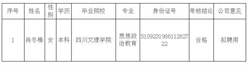 根據《雅安交建集團康居建設工程質量與室內環(huán)境污染檢測有限公司綜合考核聘用工作方案》,按照“公開、平等、競爭、擇優(yōu)”的原則,經考核合格,現(xiàn)將我公司擬聘用人員名單予以公示。