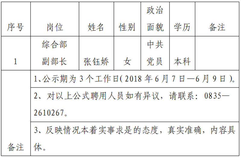 根據(jù)雅安市交通建設(shè)(集團)有限責(zé)任公司人才選聘實施辦法(試行)第十四條的規(guī)定:黨政機關(guān)事業(yè)單位人員選拔程序,以組織選拔方式進(jìn)行,主要是溝通推薦、組織考察、會議研究、任前公示、研究聘用。雅安交建集團平順檢測有限公司研究確定以下1名擬聘用人員,現(xiàn)公示名單如下: