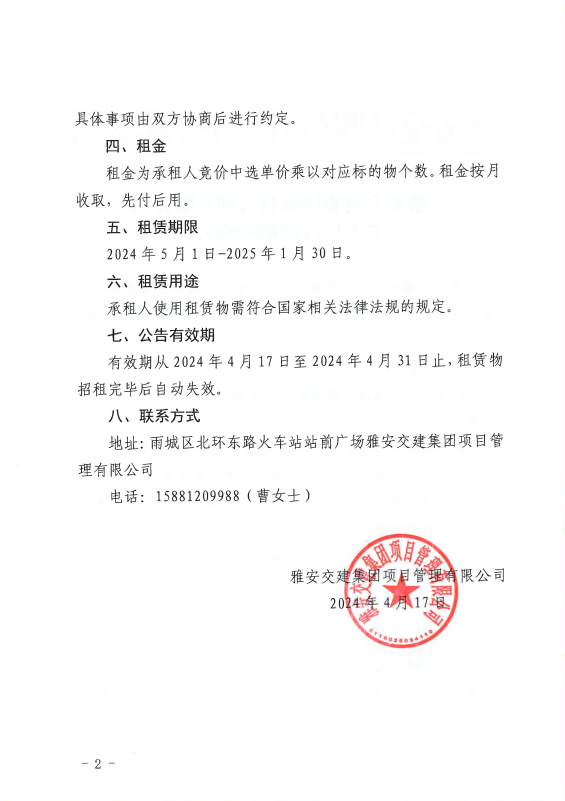 雅安交建集團(tuán)項目管理有限公司關(guān)于廣告牌招租的公告