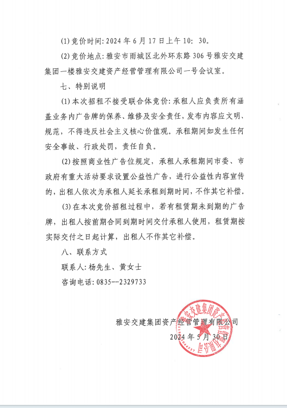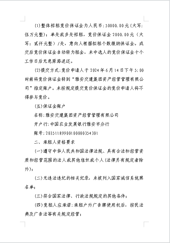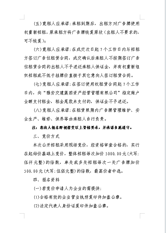 雅安交建集團(tuán)資產(chǎn)經(jīng)營(yíng)管理有限公司關(guān)于戶外廣告位競(jìng)價(jià)招租的公告附件