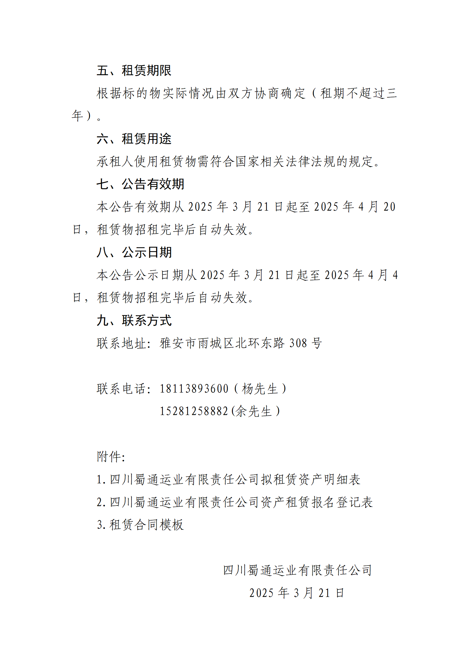 四川蜀通運(yùn)業(yè)有限責(zé)任公司 關(guān)于康藏路261號(hào)附22號(hào)、平安路30號(hào)兩處門面進(jìn)行掛網(wǎng)招租的公告