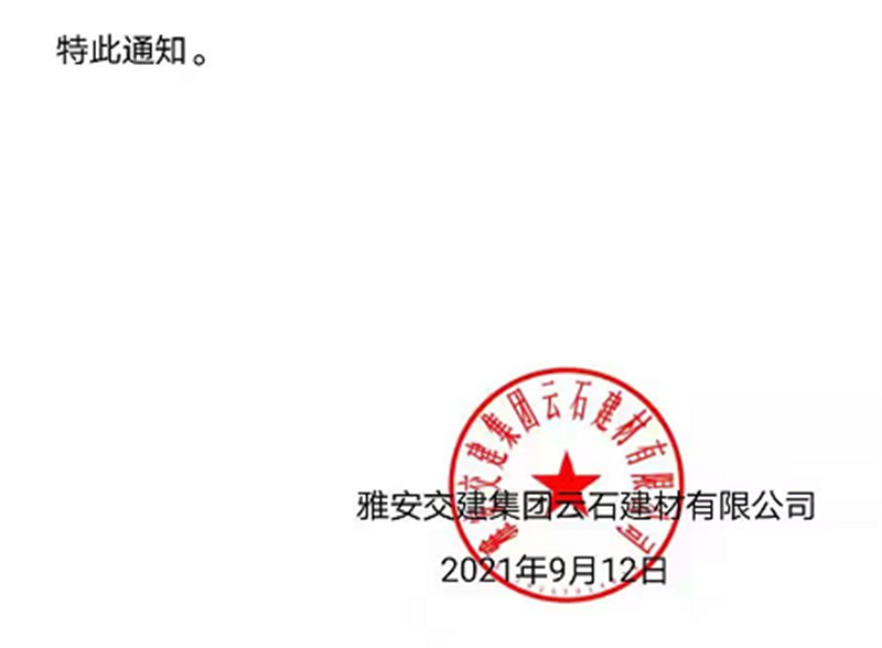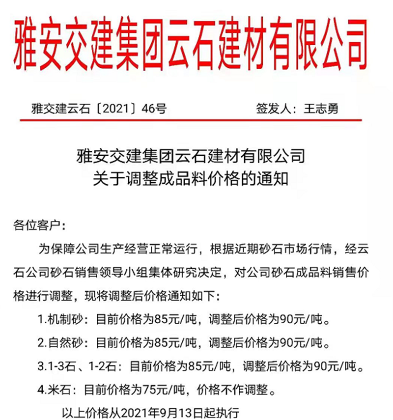 ÑŰ²½»½¨¼¯ˆFÔÆÊ¯¹«Ë¾êPÓÚÕ{Õû³ÉÆ·ÁÏäNÊÛƒr¸ñµÄ֪ͨ£¨2021.9.13£©