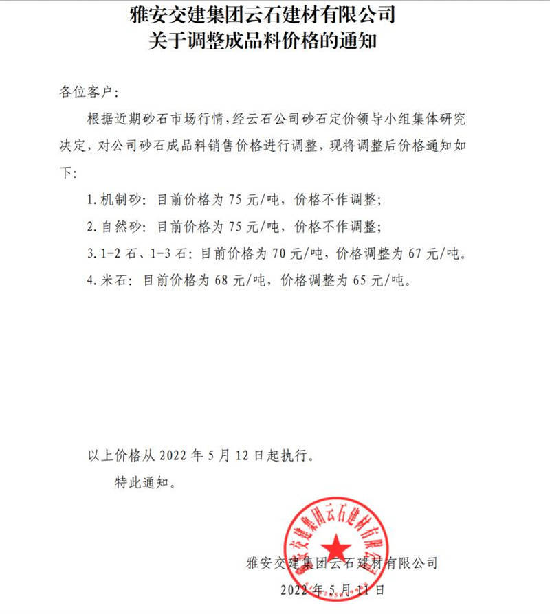 ÑŰ²½»½¨ÔÆÊ¯½¨²ÄÓÐÏÞ¹«Ë¾Õ{(di¨¤o)ƒr֪ͨ-2022-5-12