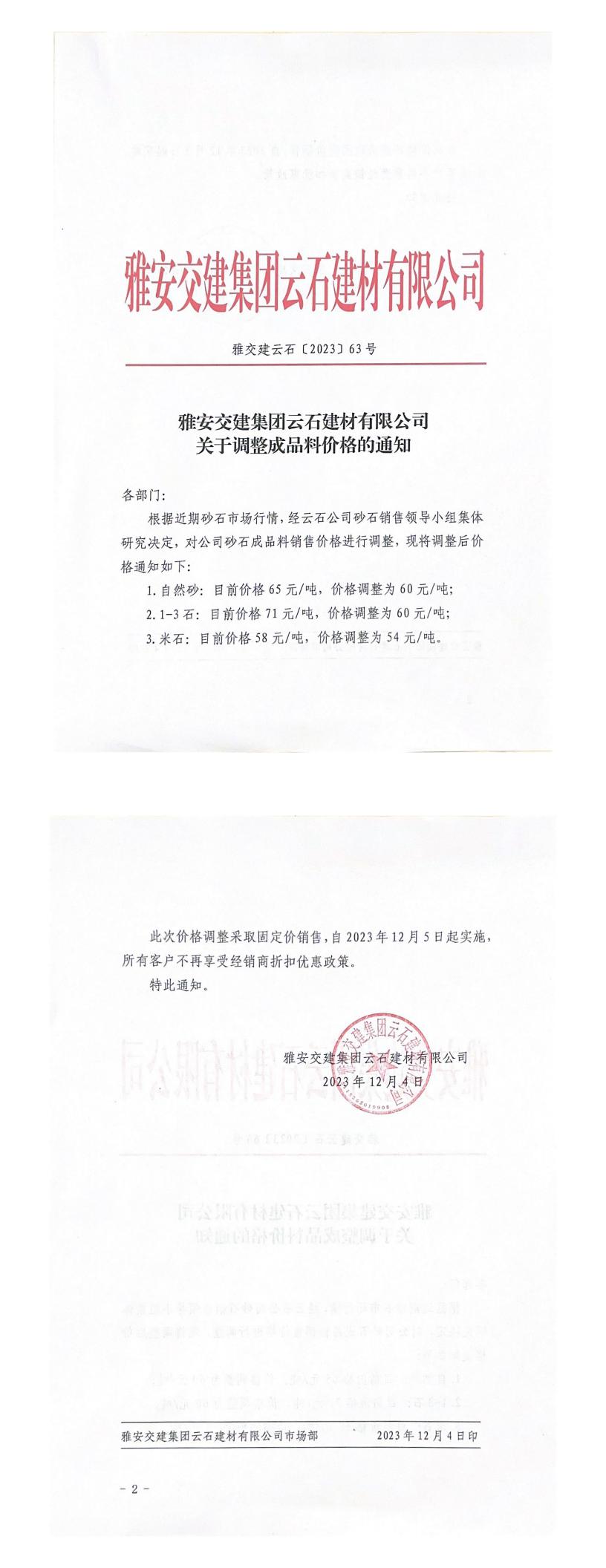 ÑŰ²½»½¨¼¯ˆFÔÆÊ¯½¨²ÄÓÐÏÞ¹«Ë¾³ÉÆ·ÁÏäNÊÛƒr¸ñÕ{Õû¹«¸æ£¨2023-12-04£©